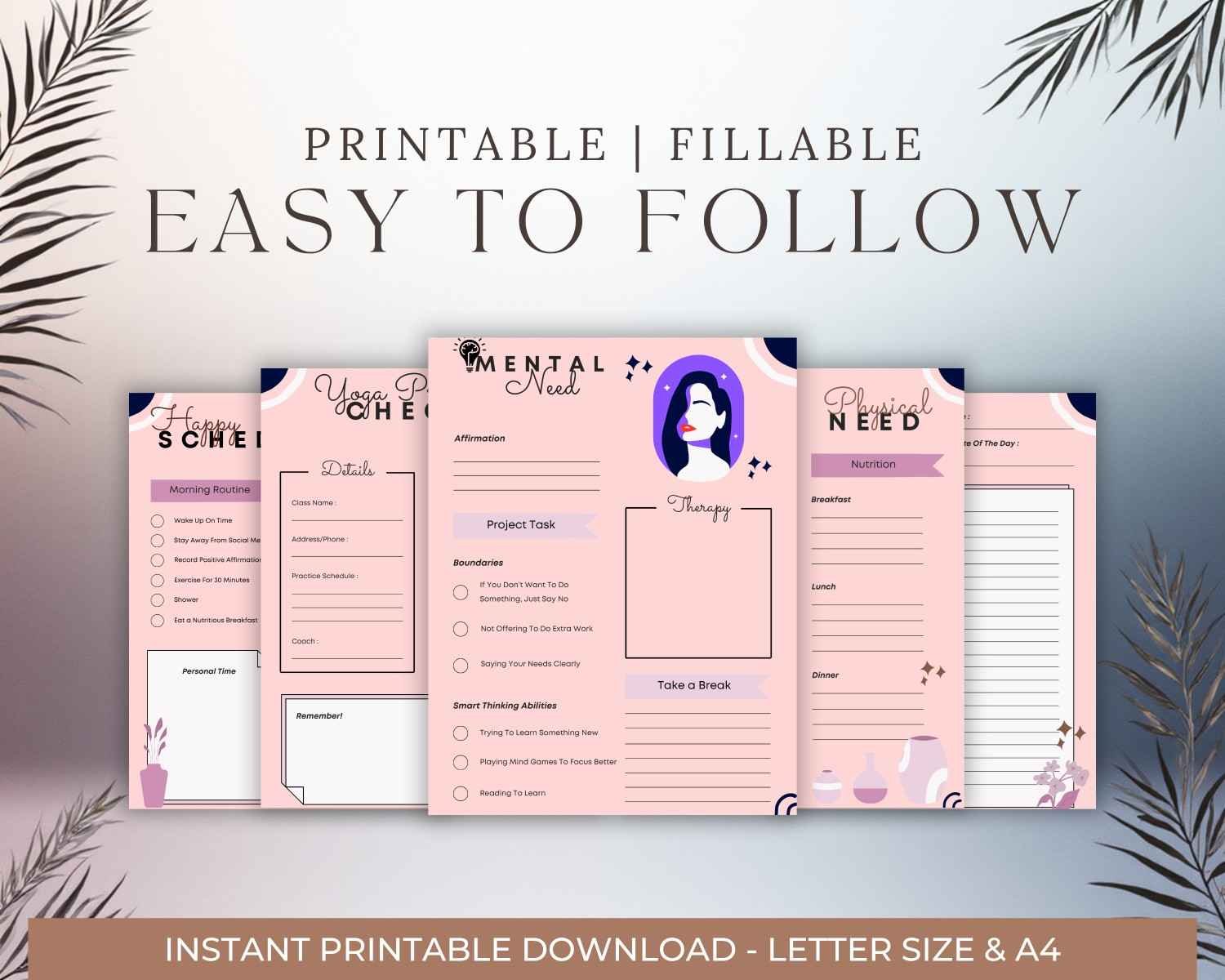 Bring Balance To Your Daily Life With This Modern Self-Care Planner — A Printable & Fillable A4 PDF (Non-Editable) Designed For Women Who Want A Simple, Ready-To-Use System To Organize Their Wellness Routines.
